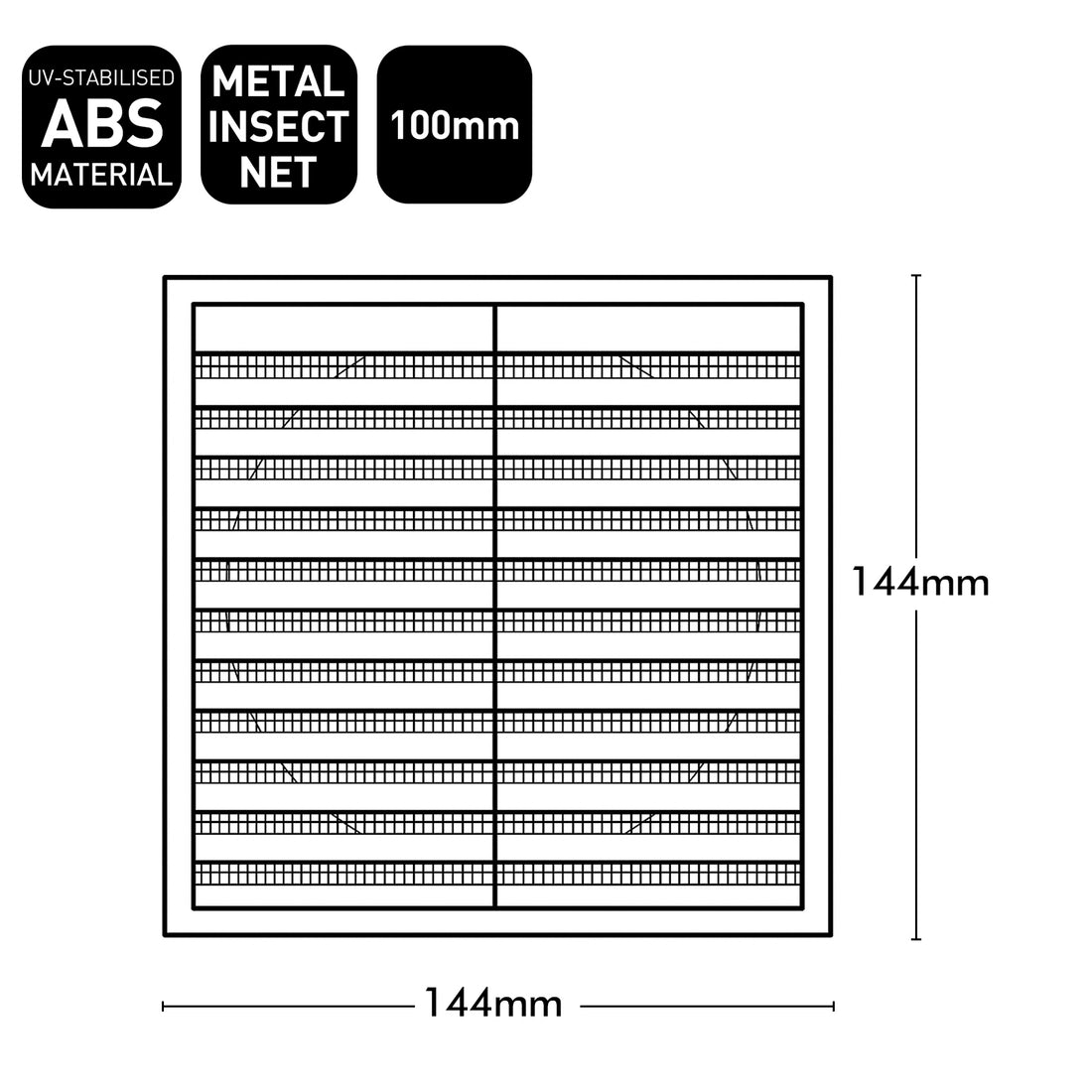 ABS Exterior 100mm Square Grille Vent