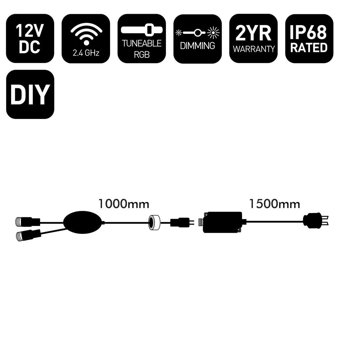 - Colour select/hanging and dimmable RGB or single colour LED via app and voice control
