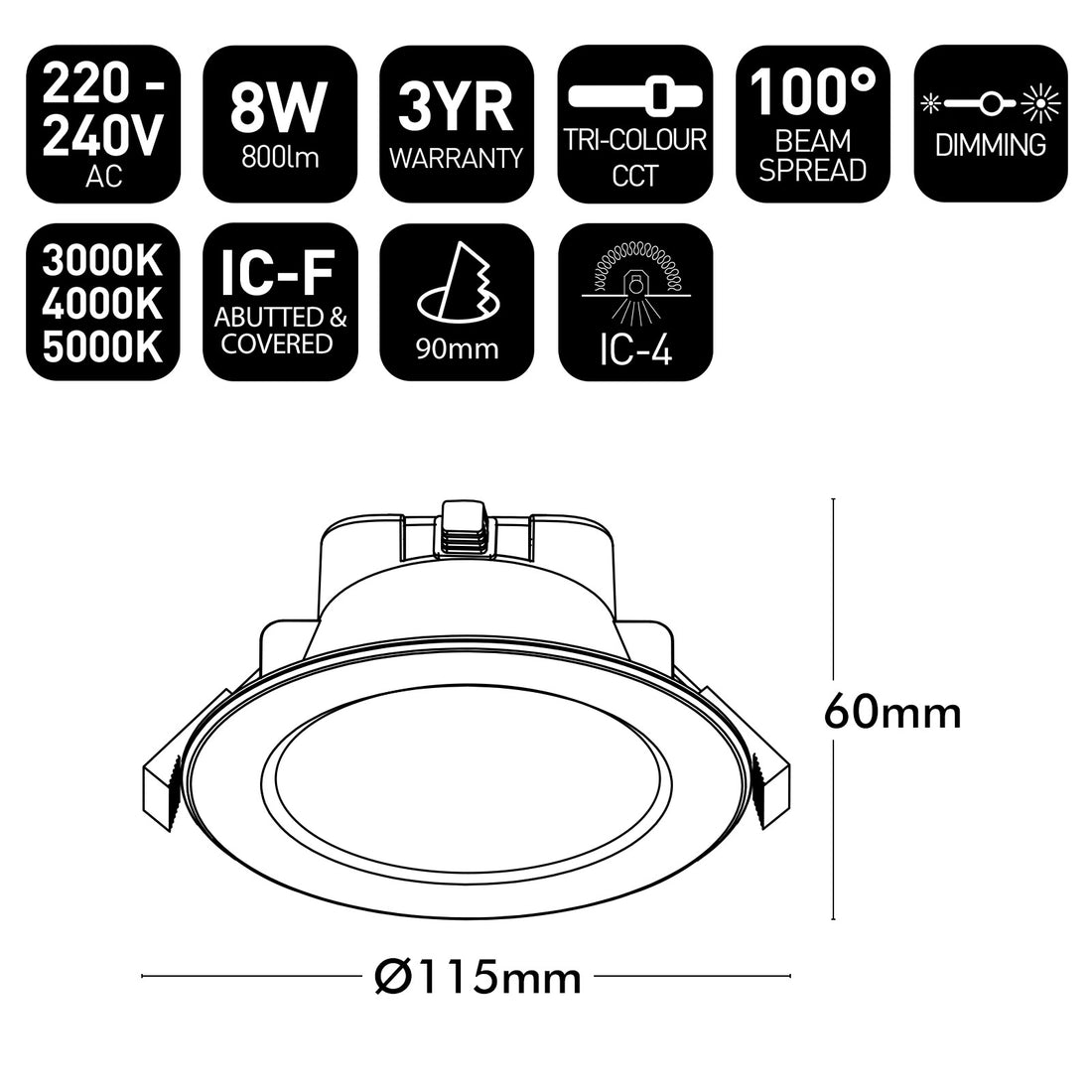 - Perfect for new or retro-fit installations with a standard 90mm hole cut-out.