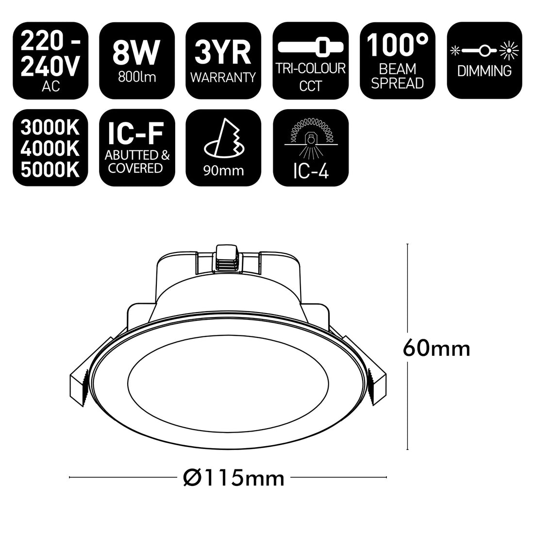 - Perfect for new or retrofit installations with a standard 90mm hole cut-out