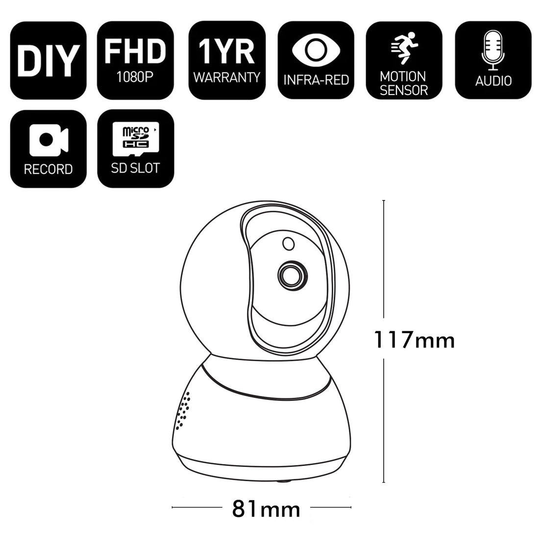 Compact pan & tilt camera featuring a wide viewing angle. It’s smart so you can see what’s happening at your home remotely.